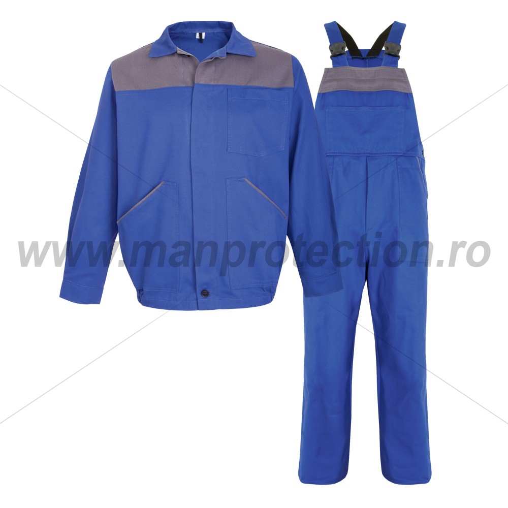 Jacheta cu buzunare exterioare si pantaloni cu bretele ajustabile;