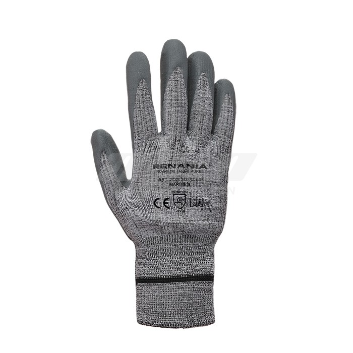 CONSTRUCTIE: manusa tricotata cu 5 degete, de protectie la taiere, impregnata cu nitril printr-o tehnologie de reducere a oboselii, pe palma si varful degetelor, manseta elastica;