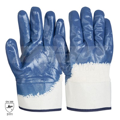 CONSTRUCTIE: manusa din tricot de bumbac, impregnata 3/4 cu cauciuc nitrilic, manseta larga caserata;