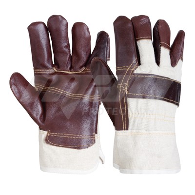 CONSTRUCTIE: manusa cu 5 degete, palma cu degetul mare, aratator si mic sunt confectionate dintr-o singura bucata de piele nededa de bovina, in combinatie cu textil, elastic pentru ajustare pe dosul manusii, cu manseta rigida paspoalata;