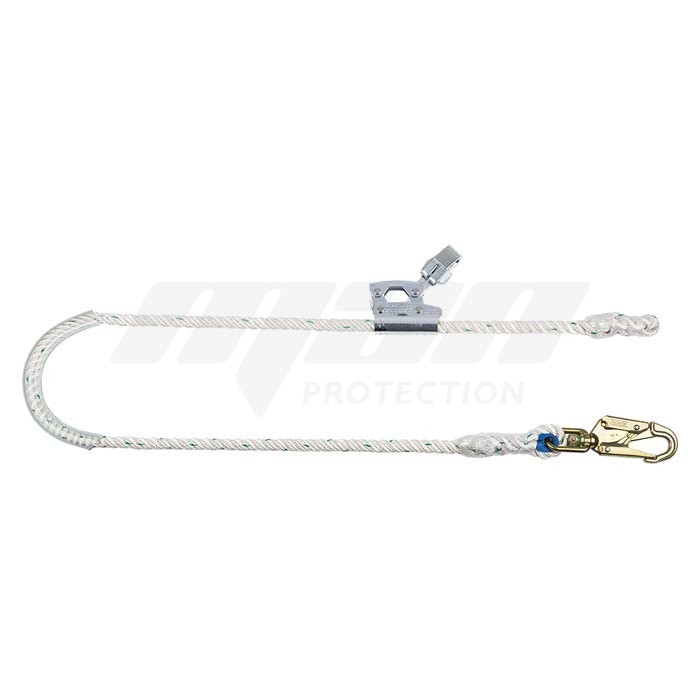 CONSTRUCTIE: mijlocul de legatura de pozitionare, capatul cu carabiniera pivotanta, cu inchidere automata, se prinde de unul dintre inelele laterale ale centurii de pozitionare sau centurii complexe combinate/multifunctionala, celalalt capat este liber, teminat cu un nod, reglarea lungimii se face prin intermediul unui dispozitiv denumit MANUSTOP, care se prinde de cel de-al doilea inel al centurii prin intermediul unui conector montat nedetasabil pe dispozitiv.